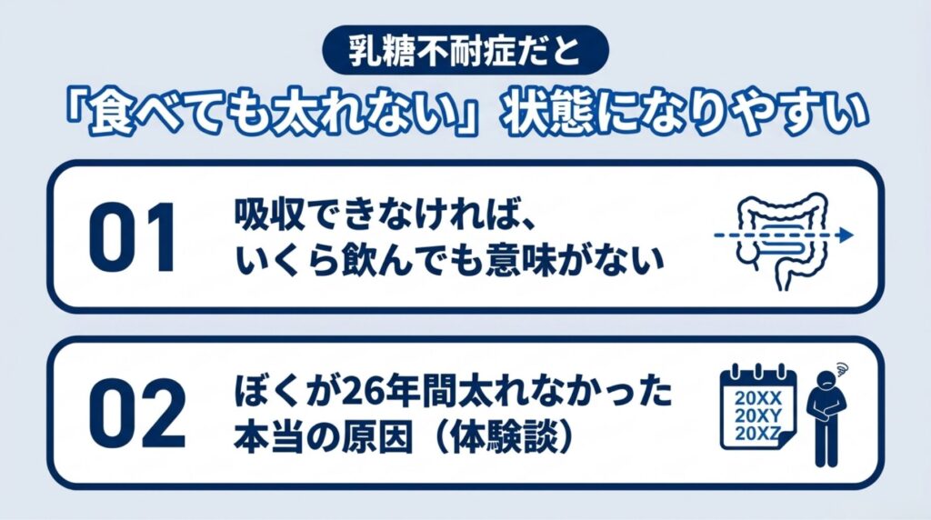 - 乳糖不耐症だと「太れない」状態になりやすい理由